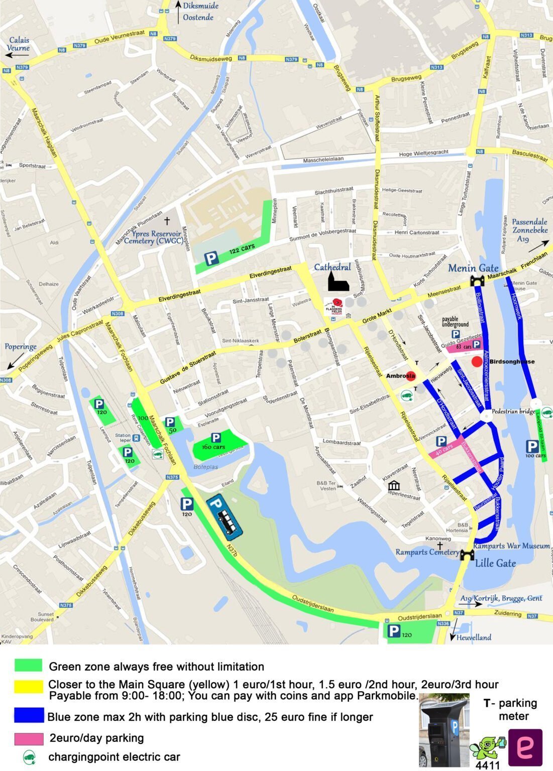 Usually you can park very close in the street to drop your bags or to park. During the day it’s 1 euro the first hour during the day from 9h till 18h. The second hour is 1.5 euro, the third hour is 2h. Then you can pay again, you don’t need to move. Ypres is very cheap to park.